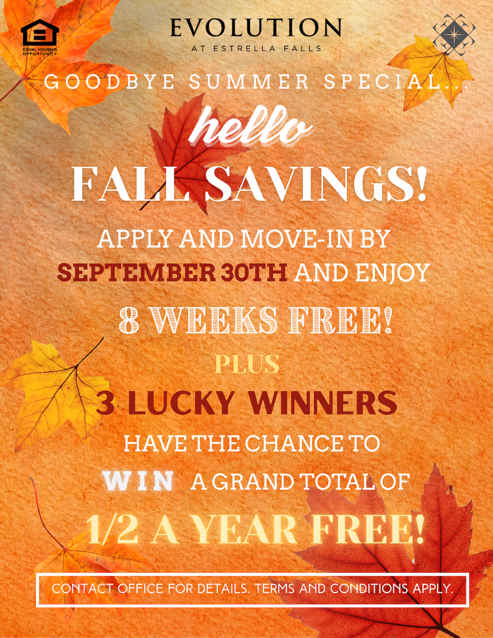 Welcome to Evolution at Estrella Falls, where everyday living feels like a getaway. Choose from spacious studio, one, two, and three-bedroom apartments designed with modern touches like granite countertops, stainless steel appliances, walk-in closets, and full-size washers and dryers. Step outside and enjoy resort-style amenities, lush landscaping, and community events that make it easy to connect and unwind. With shopping, dining, parks, and top schools right around the corner, you’ll find everything you need, and so much more, right here at home.